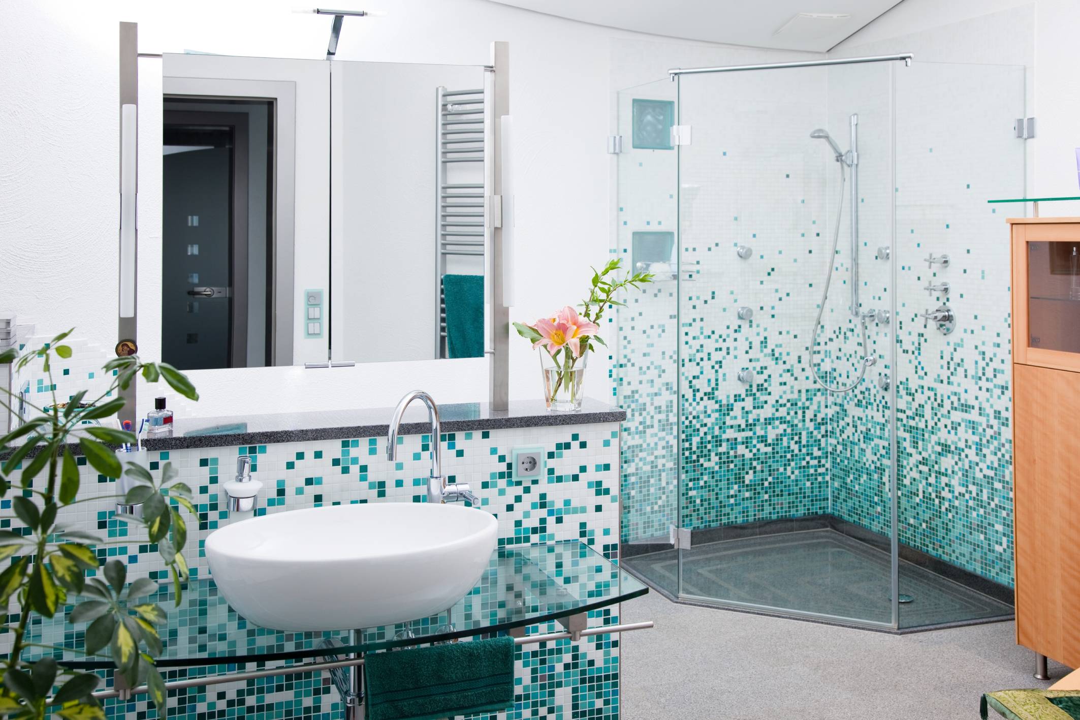 Fliesen im Bad lassen verschiedene Einrichtungsträume wahr werden – mal modern, mal retro, mal klassisch, mal elegant und mal flippig. Die unzähligen Verlegemuster eröffnen weitere Gestaltungsmöglichkeiten. Beliebt sind zum Beispiel Fliesen im Mosaiklook. Im Unterschied zum Original gibt es sie auch für kleines Geld.
